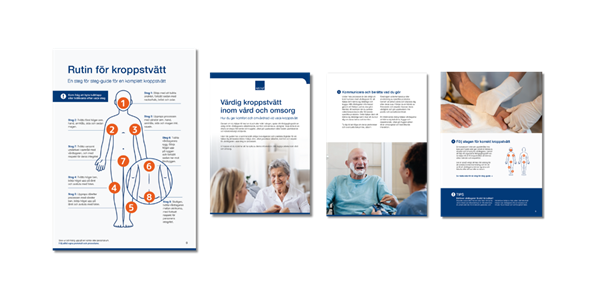 Nedan kan du ladda ner vår guide med 8 enkla steg för en värdig kroppstvätt inom vård och omsorg, och vår affisch med en illustration av vår rekommenderade rutin, som du kan hänga upp i personalrummet eller på kontoret.