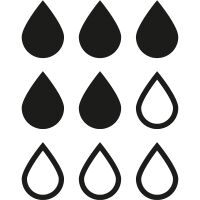 Droppsystem som visar absorptionsförmåga. Ju fler droppar, desto högre absorption. Skala från 1 till 9 droppar.